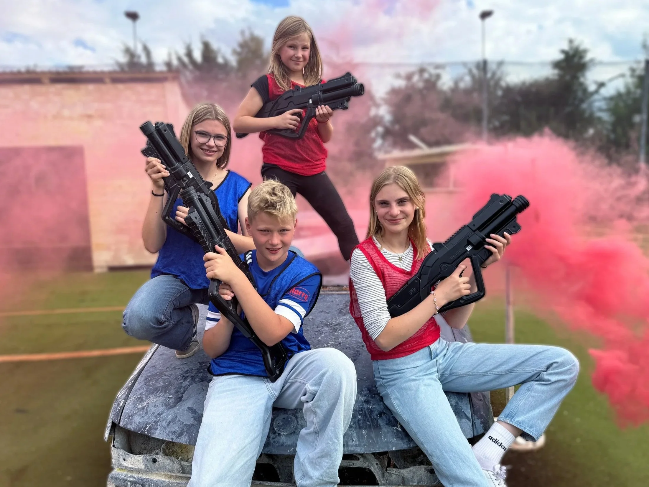 Schon ab einer Gruppengröße von 6 Personen kannst du unser Szenario Lasertag buchen. Damit habt ihr ein Spielfeld ganz für euch allein. Dank mehrerer Indoor- und Outdoor-Spielfelder seid ihr dabei sogar unabhängig vom Wetter.